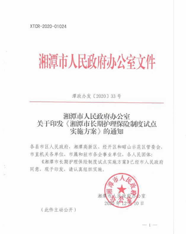潭政辦發(fā)〔2020〕33號湘潭市人民政府辦公室關(guān)于印發(fā)《湘潭市長期護(hù)理保險(xiǎn)制度試點(diǎn)實(shí)施方案》的通知